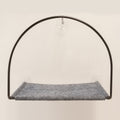 - Dark grey felt hammock cradles cats comfortably, withstands claws, and detaches for easy cleaning.