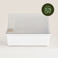 Meet Cubby—the modern litter box that contains the mess and protects your floors. Cubby's removable 8" walls defend against even the most enthusiastic litter diggers and stand-up pee-ers. Semi-transparent sides let your cat keep an eye on their surroundings so they can relax while they do their business. The open top provides easy access for cats of all sizes.