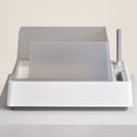 Materials: Enclosure is premium plywood with ash veneer and white semi-gloss metal, litter box is plastic, and accessories are made from matte plastic, synthetic bristles, and TPE handle for more grip.