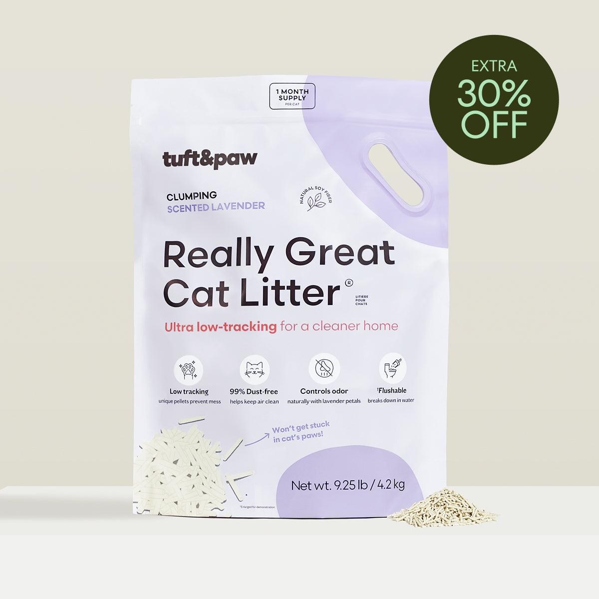 Really Great Cat Litter, Charcoal, is an unscented formula that uses activated charcoal to eliminate odors naturally. Our Lavender formula, however, is lightly scented using dried lavender petals for a soft, gentle aroma. Both are ultra low-tracking, 99% dust-free, clumping and flushable.